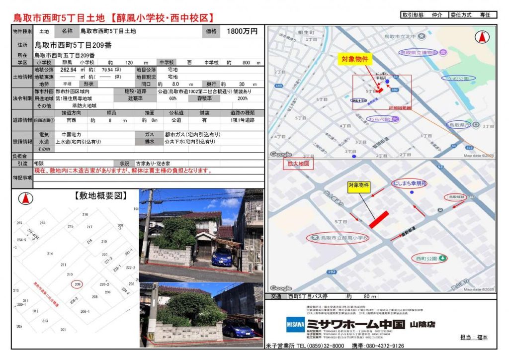 | 特記事項 | 景観法 準防火地域 現在・建物あり。解体は買主様のご負担でお願いいたします。 |